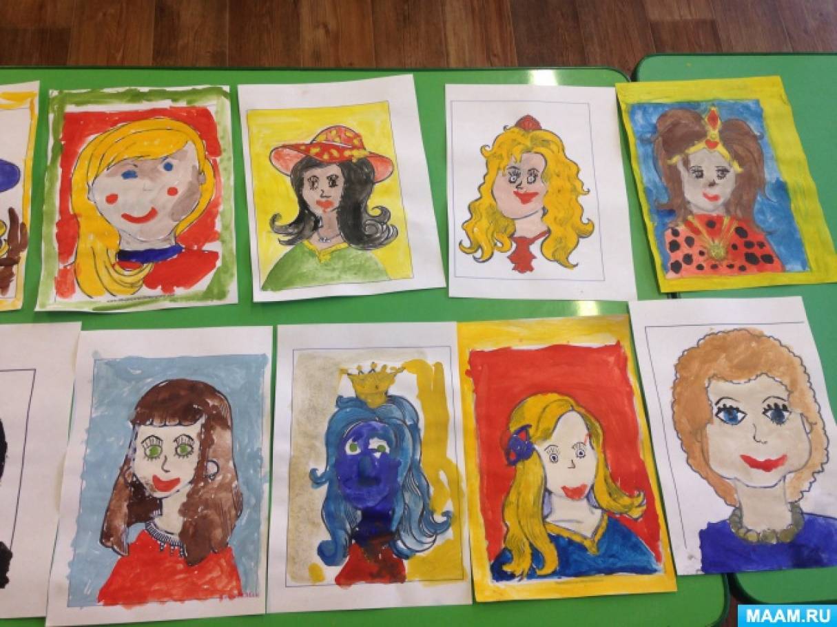 В качестве демонстрационного материала нужны различные портреты, на примере которых детям будет проще объяснить правила рисования.